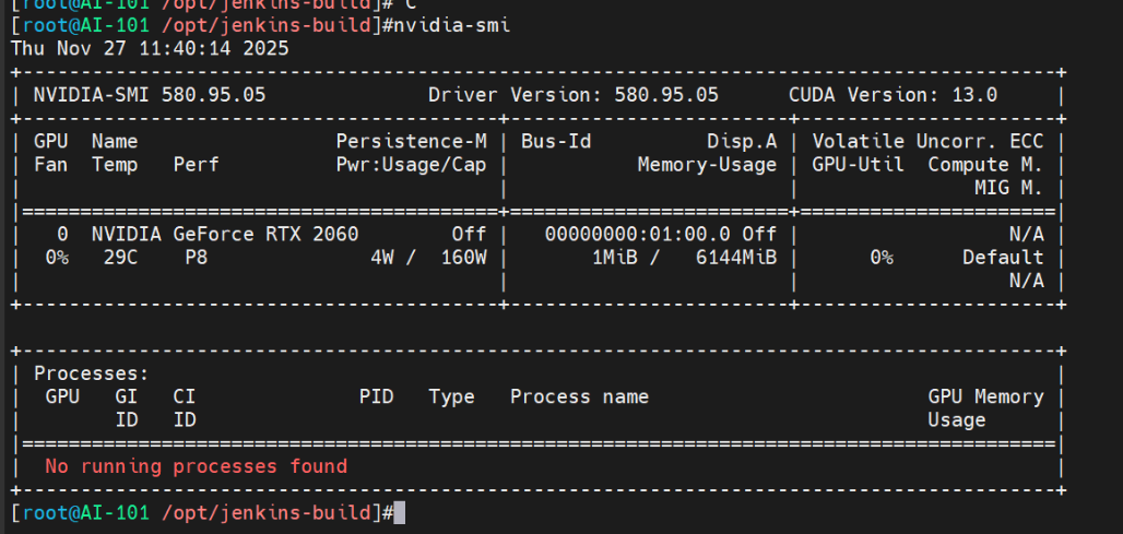 NVIDIA GeForce RTX 2060Memory 6144 MiBGPU-Util 0%Temp 29C:一块 6GB 的 2060,当前几乎空闲且温度很低,“基础硬件 + 驱动”完全 OK,可以开始跑任务
